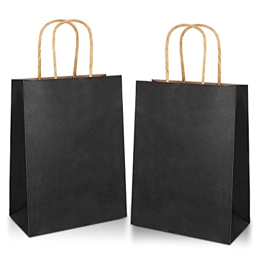 30pcs Black Paper Bags,Paper Bags with Handles,Gift bags for Halloween Party,Wedding,Celebrations(5.9×3.15×8.27in 130gsm)