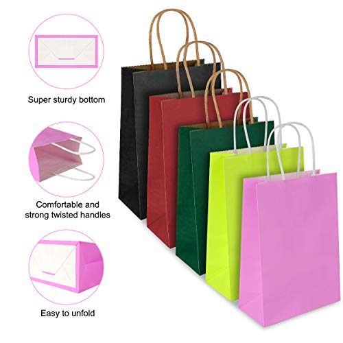- ❤ Thick Multicolor Gift Bags: The paper bag with handle is made of 130GSM kraft paper, strong and not easy to tear. The sturdy handle makes this tote bag better load-bearing than ordinary single-layer gift bags.