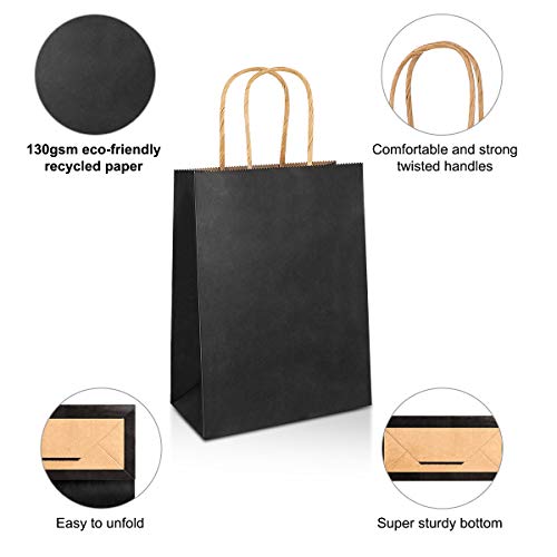 - ❤ Creative Gift Bags: pure kraft paper, you can make it become own Gift Bags by writing, painting, or glue other small things as decorations to fit your party theme, make them special; those black paper bags with handles, convenient to carry around.