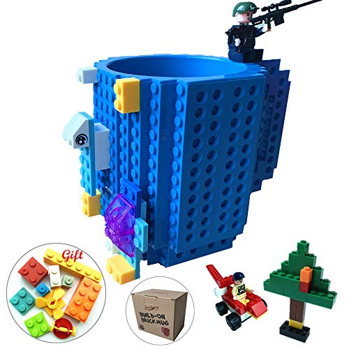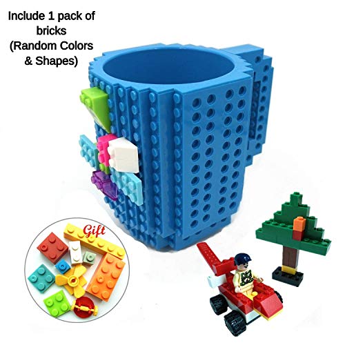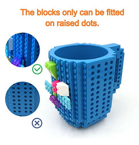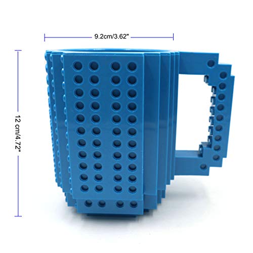 Build-on Brick Coffee Mug, Funny DIY Novelty Cup with Building Blocks Creative Gift for Kids Men Women Xmas Birthday (Blue)