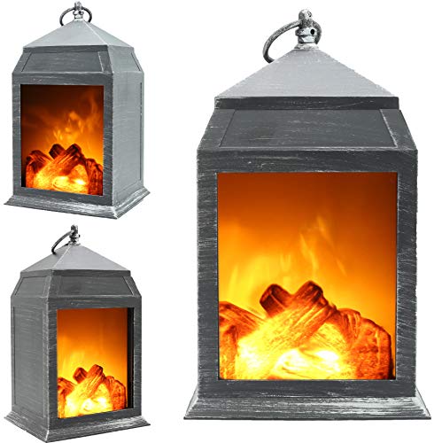 • MAKE YOUR HOME EVEN MORE COSY: Are you looking for a homeware accessory which will make your home more cosy and relaxing, especially with winter being just around the corner? Then we have the perfect solution for you, a fireplace lantern with logs and an extremely realistic moving flame effect, together with a brushed retro style. Our fire lamp will add even more colour and a welcoming ambiance to any living room