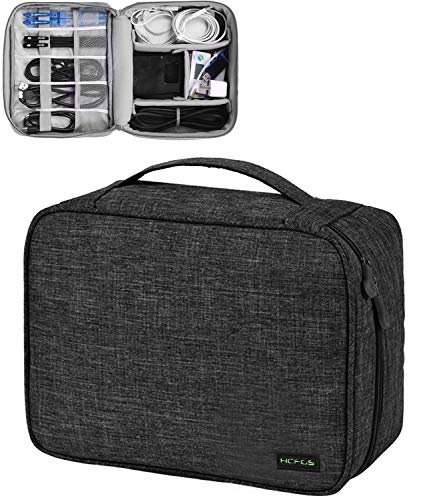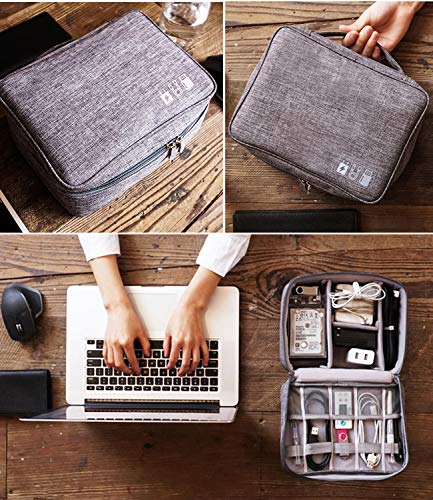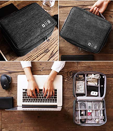 - Spacious Storage Spaces - The multi-layer design gives this electronic travel bag more storage space. It can fit your tablet computer, power bank, mobile phone charger, cable, laptop adapter and etc
