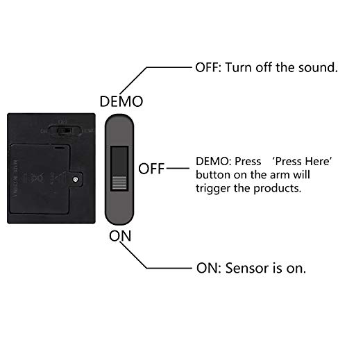 - Move the switch to the ON side, the sensor is on. Move the switch to the middle ‘DEMO’, every time you press ‘Press Here’ button on the hand will trigger the reaper to talk and snap. You can turn off the sound by switch to ‘OFF”