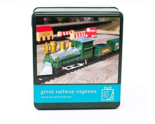 Based on the best selling train in a tin set this Great Railway Express is how to commute in style! The tin contains a battery operated engine (not supplied), 3 trucks, 6 curved and 12 straight track pieces, wooden station, gates and a van.