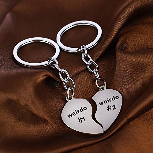 Product: BESPMOSP 2PCs Split Valentine Heart Best Friends Weirdo 1 and Weirdo 2 Pendant Friendship Keychain Set