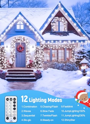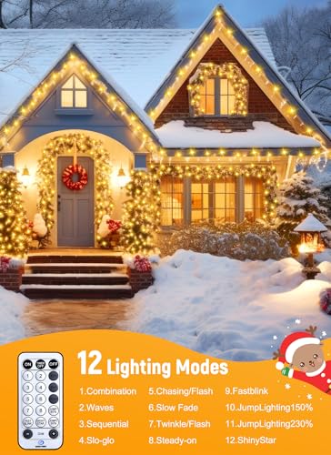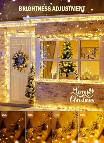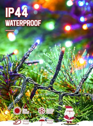 - 【IP44 Waterproof Christmas Outdoor Lights】The Christmas fairy lights are designed with an IP44 waterproof rating, making them suitable for both indoor and outdoor use. They are the perfect choice for adding a touch of festive charm to your Christmas decorations. Hang them around windows, stairs, doorframes, banisters, eaves, atop cabinets, walls, gardens, or gazebos to create a standout feature in your Christmas display
