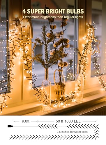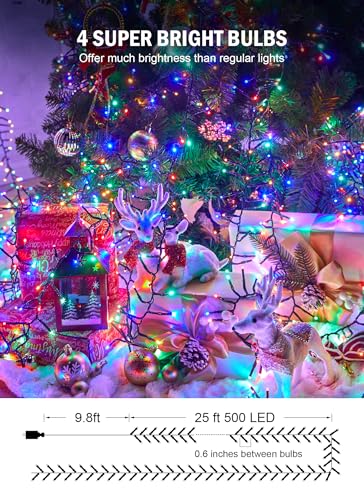 - 【Super Bright Cluster Christmas Lights】Our Christmas cluster tree lights have 500 bright LED bulbs on the 25-ft string, producing ample lighting. Ideal for Christmas trees, wreaths, garlands, trees, mantelpieces, bushes, fences, gutters, and nice for celebrating Christmas/Halloween/Thanksgiving/New Year/birthday, etc