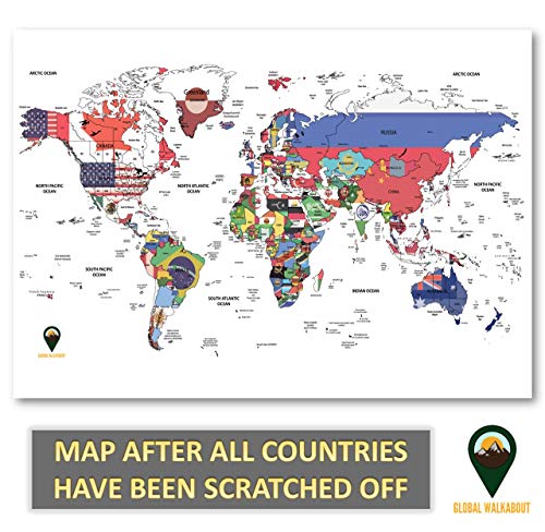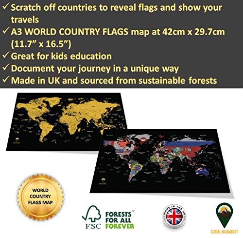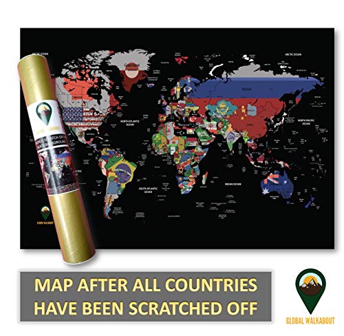 Global Walkabout Scratch Off Map with Flags background – Deluxe Travel Size World Map Poster – Countries and Facts – Travel Gift (Black)