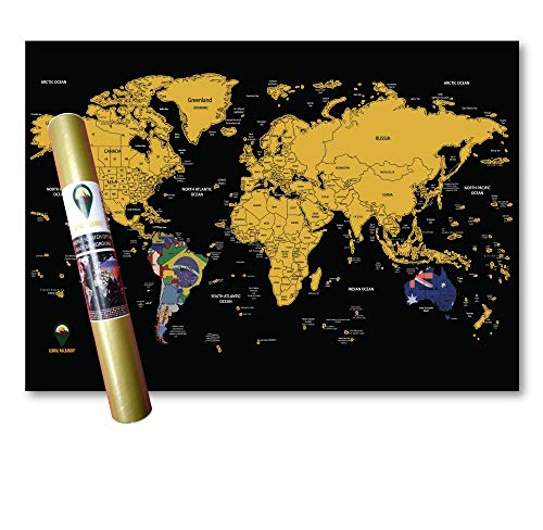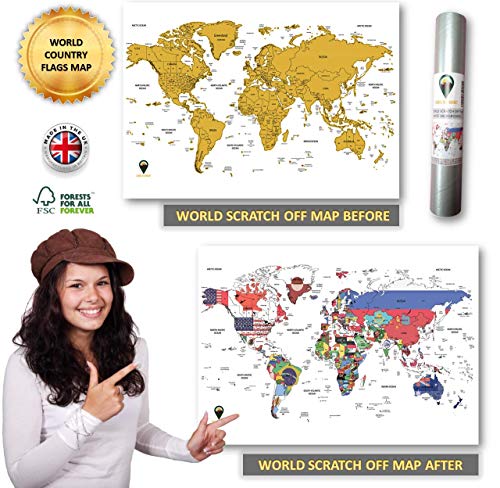 • DELUXE – our scratch off world map is covered with gold foil. Scratch off the foil to show where you’ve been to reveal colorful country flags and information