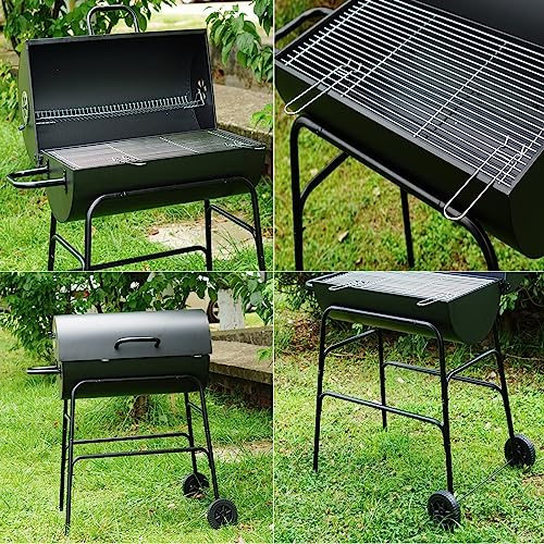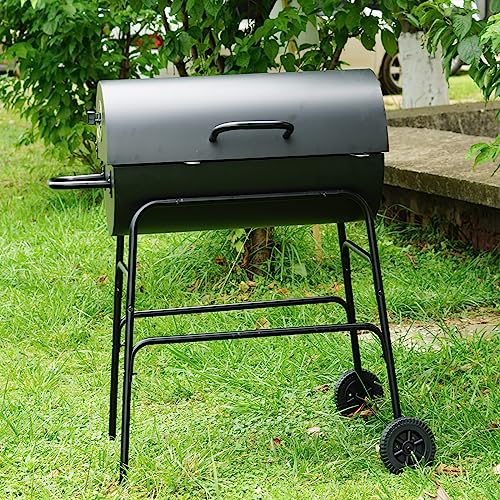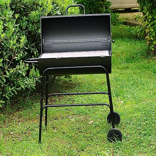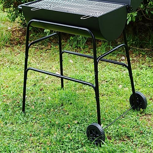 Gr8 Garden Large Portable Oil Drum Charcoal BBQ Cooking Grill Patio Barbecue Barbeque With Warming Rack Wheels Stand