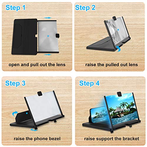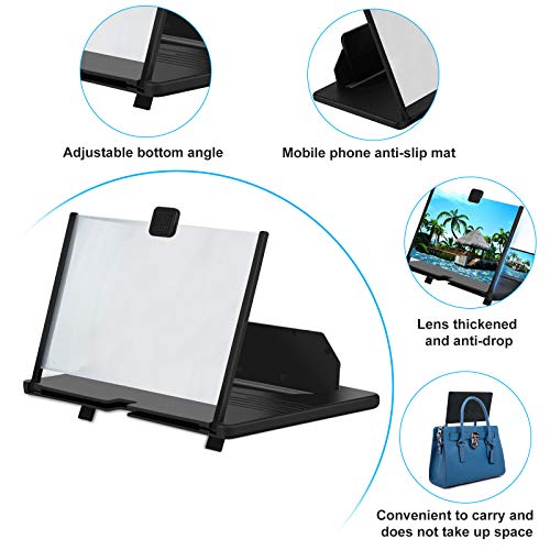 hopeful 12″ Thin Foldable Phone Magnifier Screen Foldable HD 3D Blu-ray Easy to Carry Gadgets for Men Gifts Technology 3d Movies Phone Projector (black)