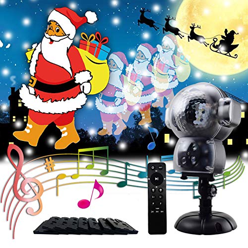 JIANKE Christmas LED Projector Lights Halloween Music Snowfall Animation Landscape Fairy Decor Flood Lighting for Indoor Outdoor Garden Party