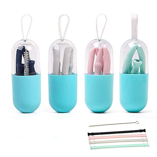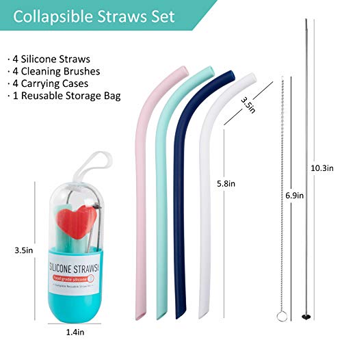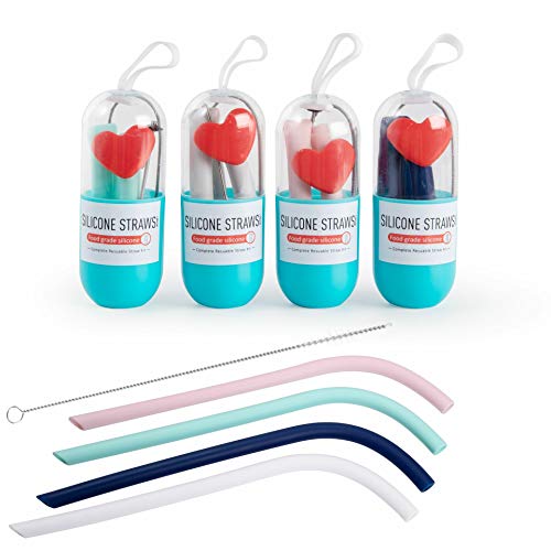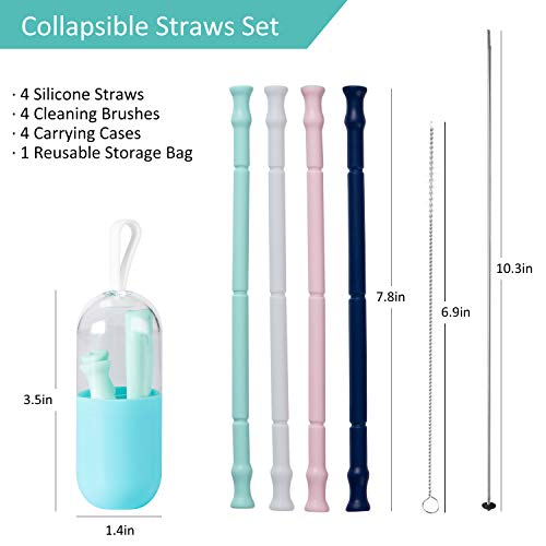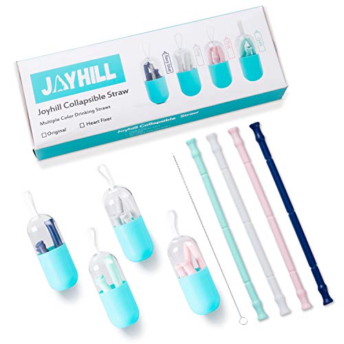 Joyhill Collapsible Straw – 4 Multiple Color Reusable and Foldable Drinking Straws BPA Free with Cleaning Brushes,4 Pack (with 4 Gift Box for Carrying)