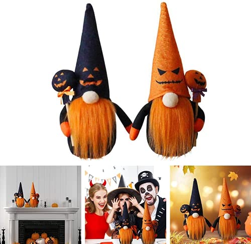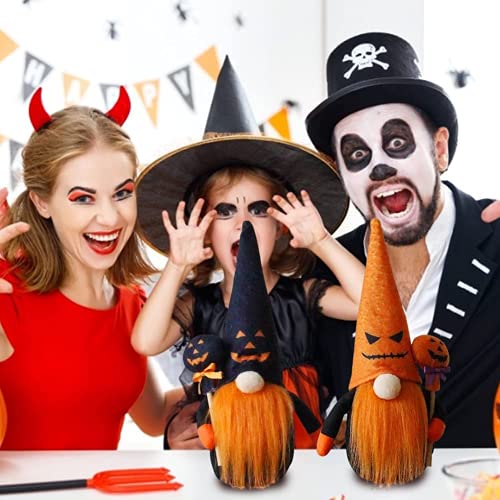 MISHAER 2 Pcs Halloween Gnomes Plush,Faceless Doll Figurine with Pumpkin Witch Hat,Handmade Ghost Santa Tomte Table Decor,Home Window Decorations for Holiday Party Gifts