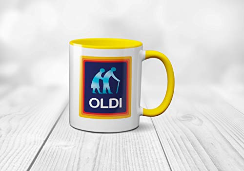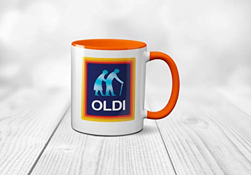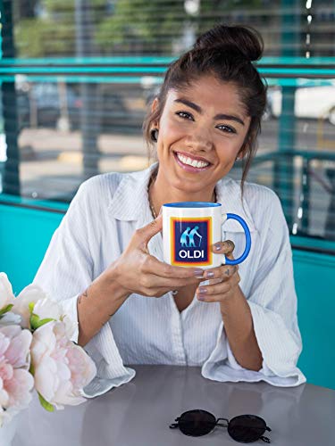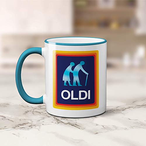 Oldi Mug- Birthdays Christmas Funny Gift Presents Celebration Novelty Old Large Heavy Duty Handle Dino Coated Dishwasher/Microwave Safe Sublimation Ceramic (Blue Handle Prime)