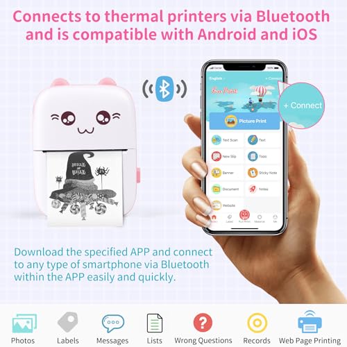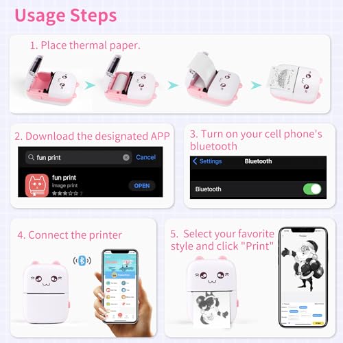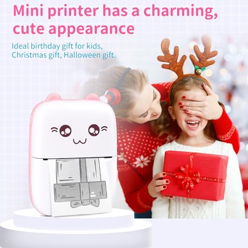 - 【Easy to use】The product comes with an instruction manual, and you only need 4 simple steps to print the labels or pictures you want. The mini printer has a cute appearance, it can be given to your family, kids, friends as a gift for Christmas, Easter, Halloween, birthday and anniversary.
