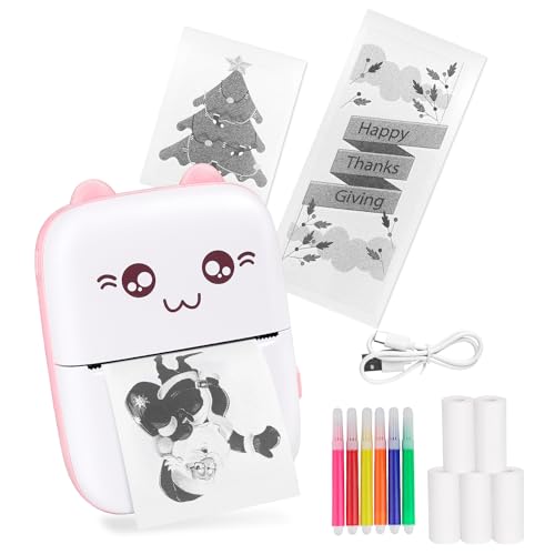 - 【Many gifts】 Comes with 5 rolls of thermal printing paper, and 5 color pens. Thermal printer printing speed 10mm/s, no ink cartridges, fast drawing, low noise printing.Once you receive the printer, you can start to experience the joy of printing. The mini photo printer will be your good helper and bring you a good experience.