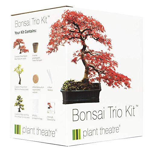 Plant Theatre Bonsai Trio Kit – 3 Distinctive Bonsai Trees to Grow – Great Gift