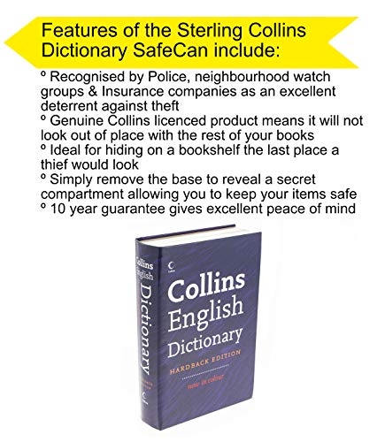 The Sterling SafeCan Dictionary is an ideal place to hide passports, important documents, money, jewellery & valuables. Just simply slide the base to reveal a secret compartment. This is a genuine replica Collins English Dictionary and looks authentic making it perfect for hiding in a bookcase. Recognised by Police, Neighbourhood Watch groups and insurance companies as an excellent deterrent against theft. Sterling products are equal to the best in the market and are backed with guarantees of up to 10 years. Sterling is a brand of Burg-Wächter one of the largest manufactures of security products in the world. Burg-Wächter has a proud heritage of over 120 years and are recognised for quality standards across our extensive range of locks, padlocks, safes, post boxes and access control solutions.