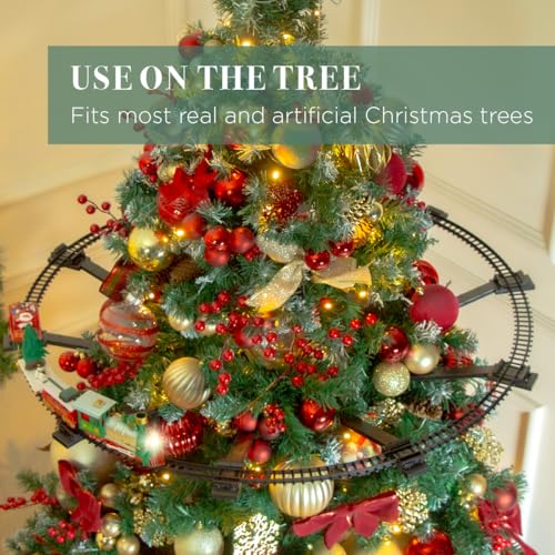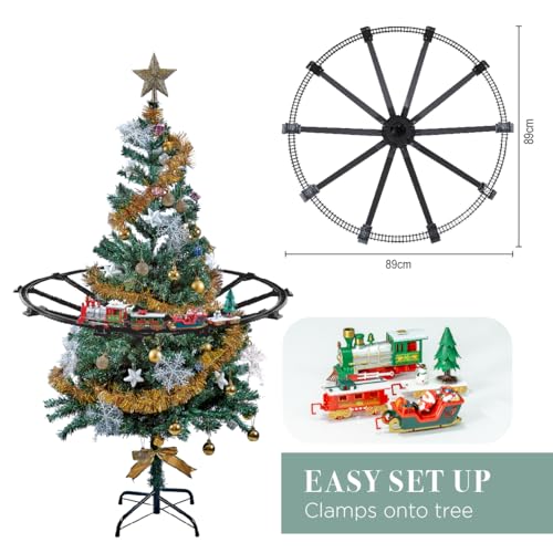 - This festive train set measures 400cm, and allows you to choose between 3 separate track layouts. The train also runs on battery power and requires 2 x AA Batteries (not included).