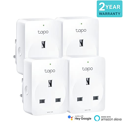 TP-Link Tapo Smart Plug Wi-Fi Outlet, Works with Amazon Alexa (Echo and Echo Dot), Google Home, Wireless Smart Socket, Device Sharing, Without Energy Monitoring, No Hub Required – Tapo P100 (4-Pack)