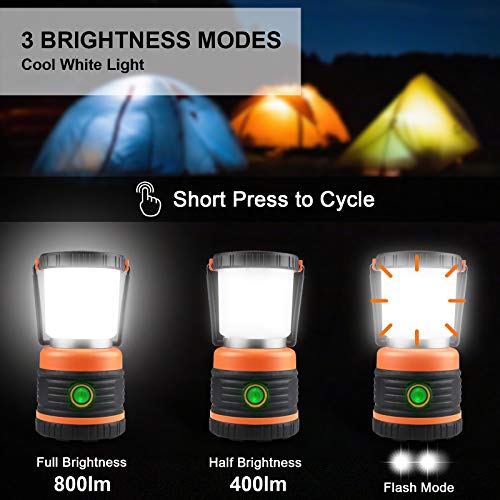 - Dimmable with 3 Lighting Modes:This lantern has 3 lighting modes. Full Brightness (800lm), Half Brightness (400lm), and Flashing mode. You can switch the modes through short press.