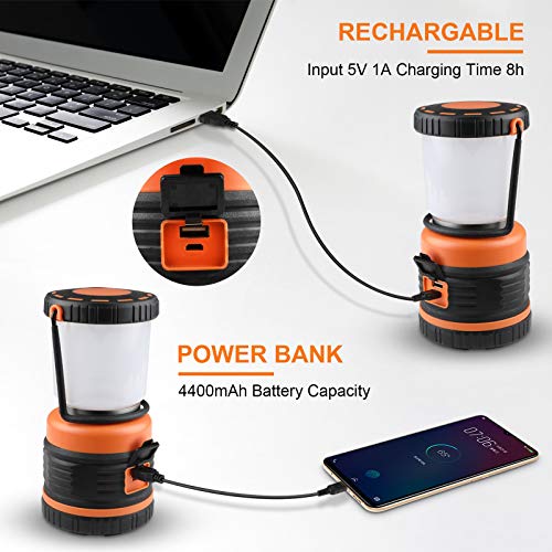 - USB Charging Design and Portable Power Bank: The lantern equipped with 4400mAh lithium battery allows charging via a USB cable, which can also be used as a power bank to charge your phone or laptop temporarily.