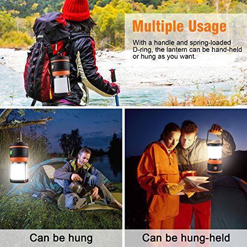 - Mutiple Usage: With a hook on the base and a handle on the top, you can hang the lantern to light up a larger area. Perfect for outdoor camping, hiking, fishing, hurricane, outages, emergencies, etc.